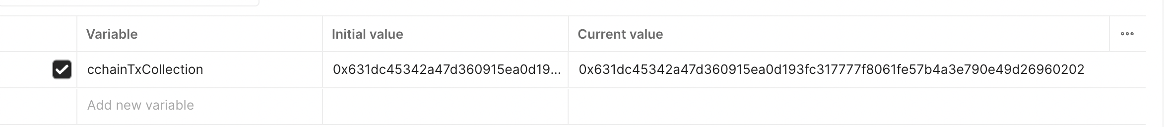 Only default variables are used in the Avalanche Environment file. To learn more about using the secret type of variables, please checkout the Postman documentation.