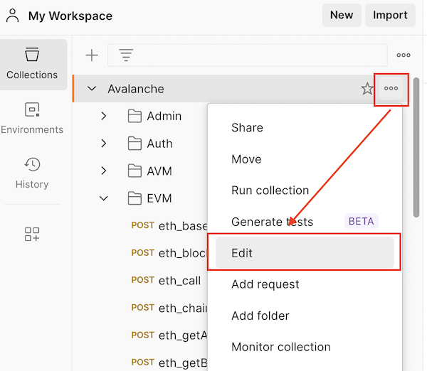 Click on the three dots next to the Avalanche collection and select Edit